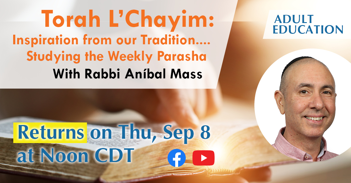 Explore a variety of themes raised each week in the Parasha. No experience is necessary, no Hebrew knowledge required, and you don’t need to be a Torah scholar. The format is adapted from our post-Shabbat service meetings — Rabbi Mass will present themes of the Parasha, with questions taken online by chat on Facebook and YouTube. Join us in studying with the Rabbi and enjoy hearing how our ancient texts influence our contemporary lives.