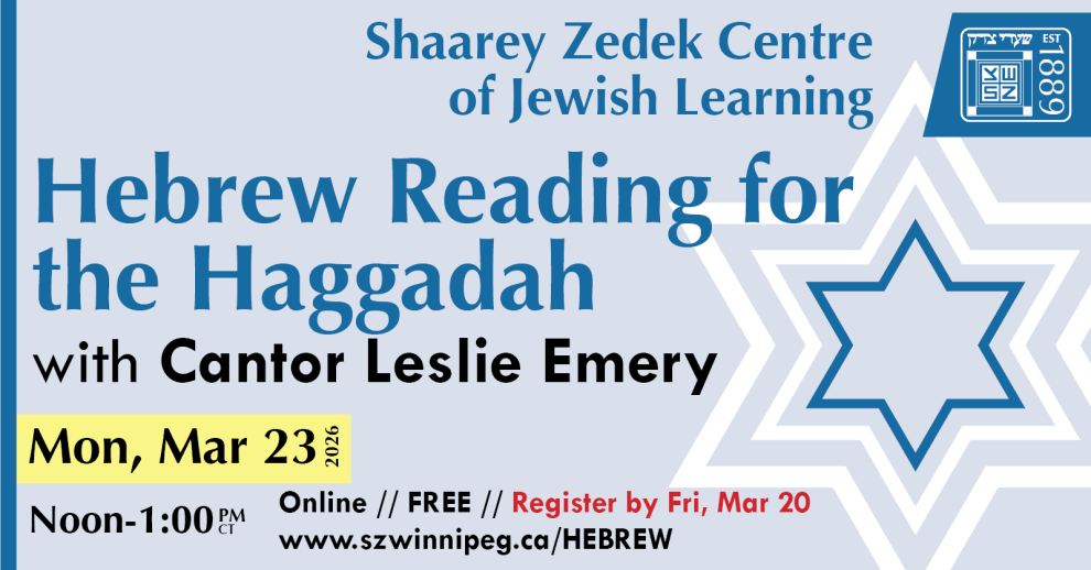 Free Session // Register by Friday, Mar 20, by visiting www.szwinnipeg.ca/HEBREW