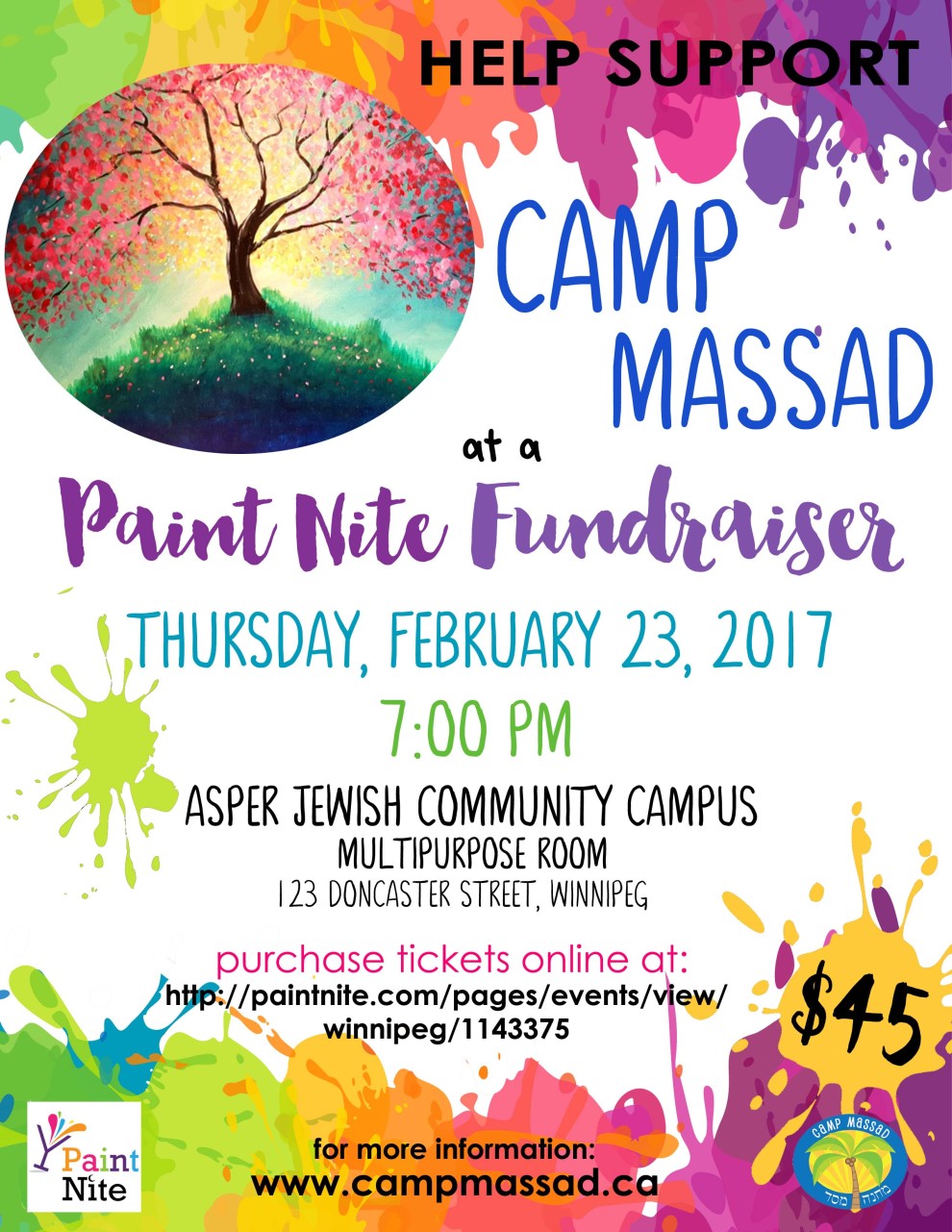 Paint Nite is a great night out! 2 hours of instructed painting, no experience required! Enjoy an evening out with friends and family while creating your very own masterpiece. Beverages, including wine and snacks will be available for purchase. This fundraiser is to help with Camp Massad subsidies to help children experience the magic of Massad! Open to everyone of all ages! Register at: https://www.paintnite.com/events/_1143375