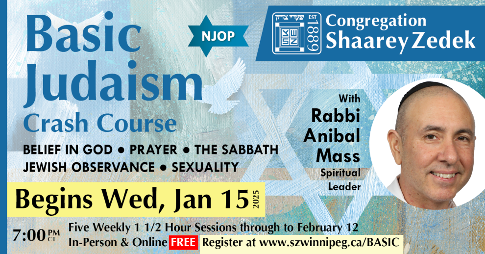 There is no better time to sign up for our five-part Crash Course in Basic Judaism. Join Rabbi Anibal Mass on a journey beyond the Judaism you think you know!