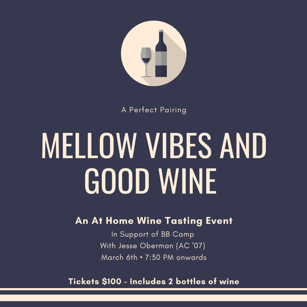 Join BB Camp alumni, Jesse Oberman as he hosts us in a wine tasting for our spring fundraiser.