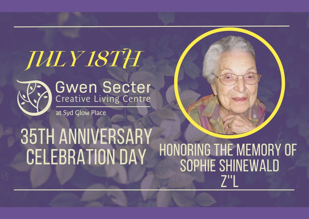 Come join us and celebrate Gwen Secter Creative Living Centre's 35th Anniversary as we honour the memory of volunteer extrordinaire, Sophie Shinewald Z'L.