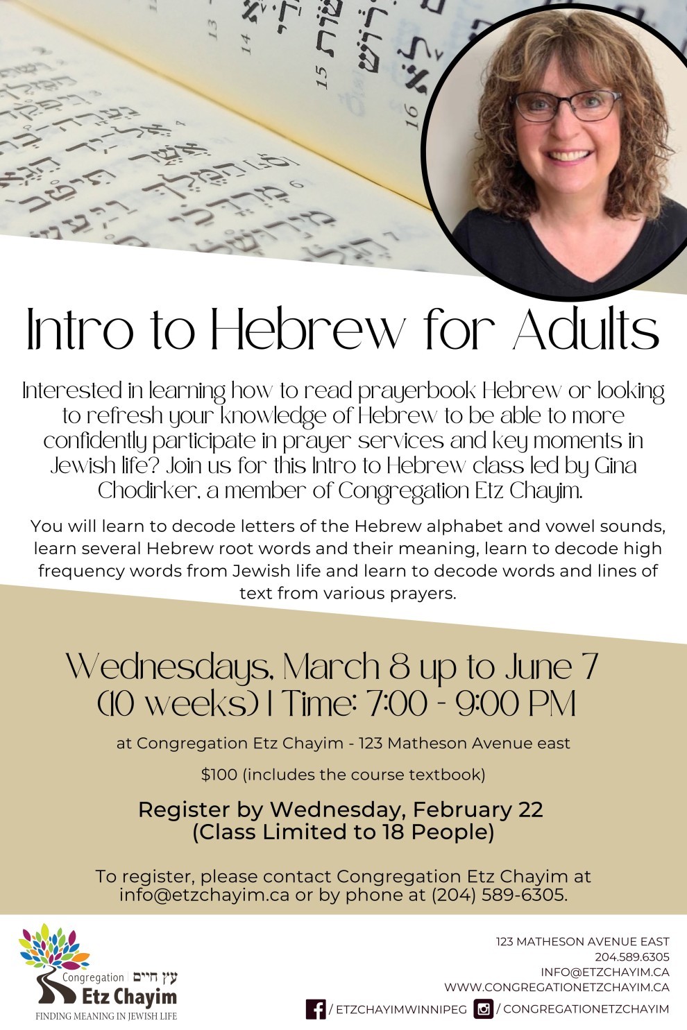 To register, please contact Congregation Etz Chayim at info@etzchayim.ca or by phone at (204) 589-6305.