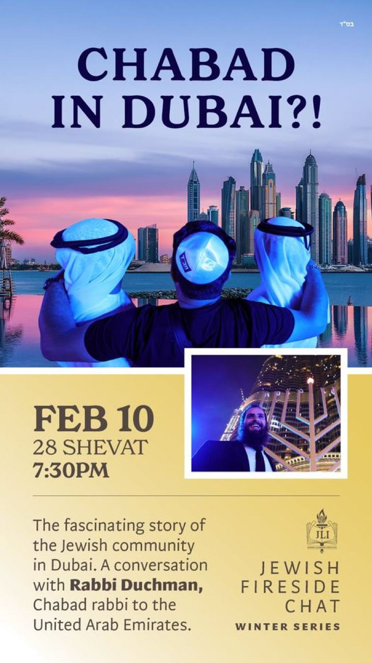 The Winter Series 2021 is now scheduled and our first LIVE webinar Chabad in Dubai?! will take place on Wednesday, Feb. 10 at 7:30 PM. ⬇⬇⬇