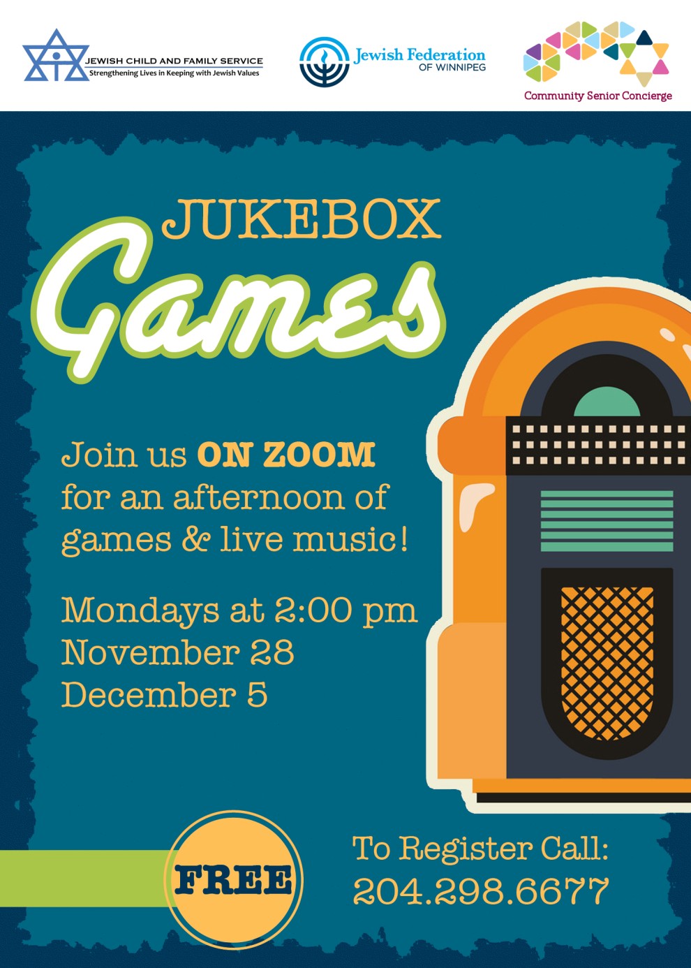Join Jewish Child and Family Service on zoom for an afternoon of games & live music!