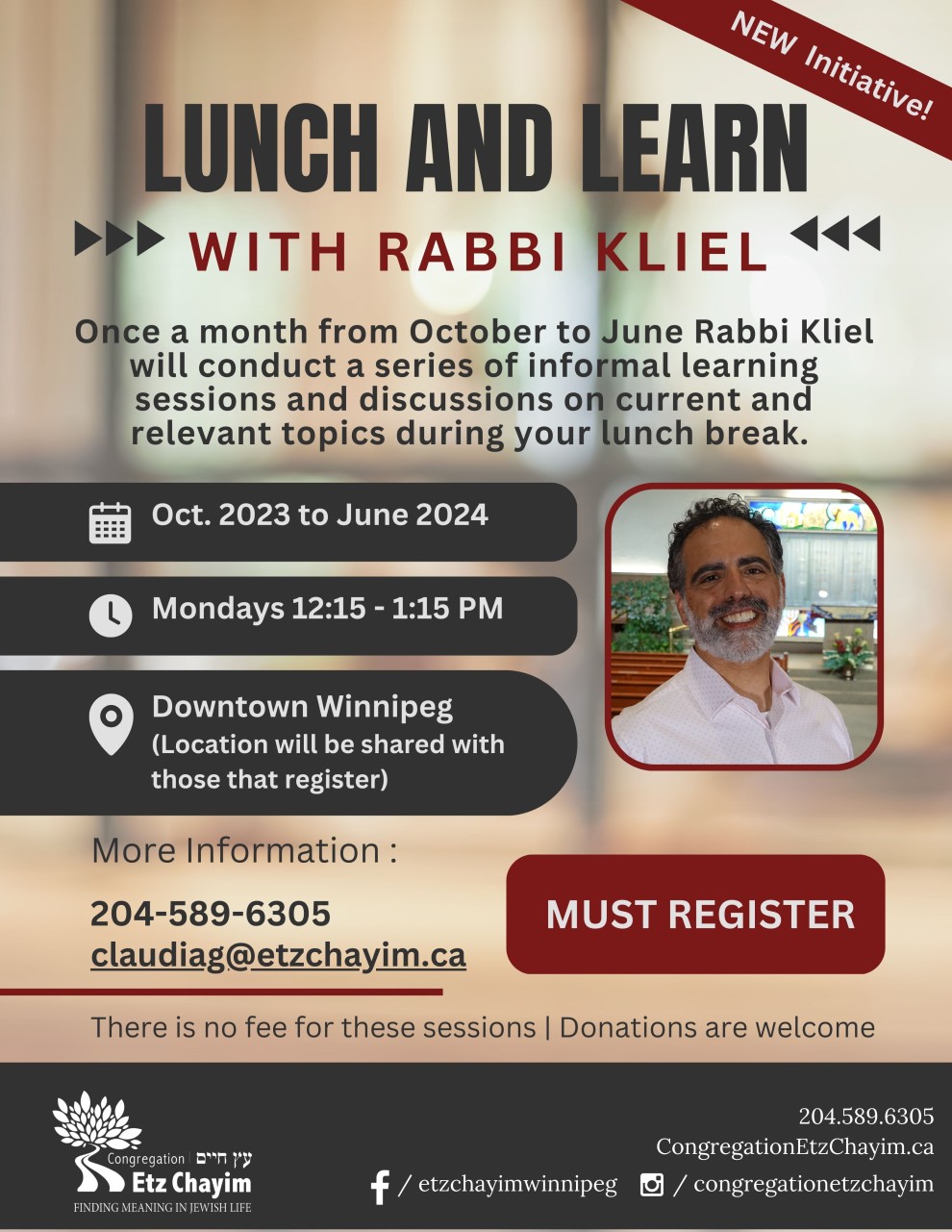 Registration required claudiag@etzchayim.ca or 204-589-6305