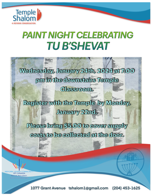 Wednesday, January 24th at 7 PM in the downstairs Temple Shalom Classroom.