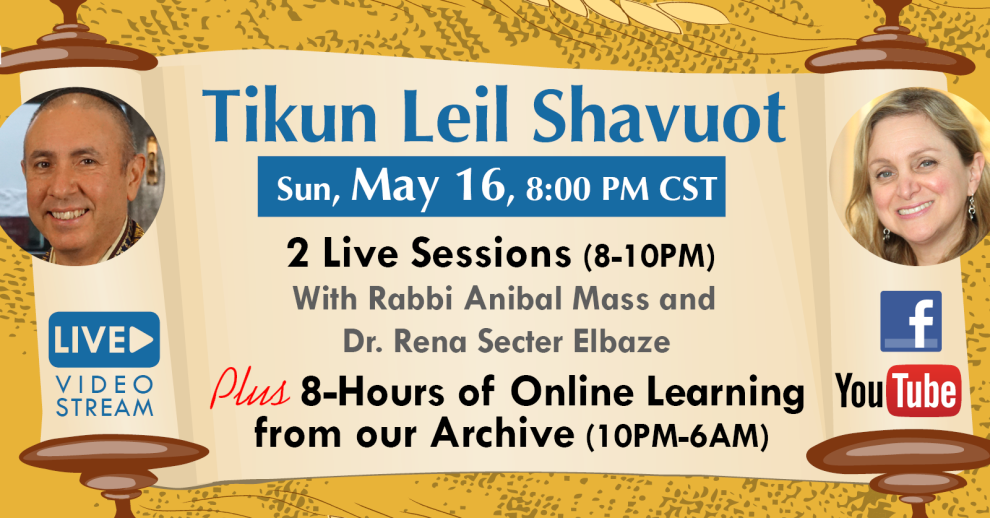 It is tradition on Erev Shavout to celebrate the giving of the Torah by spending an evening of study together – Tikun leil Shavuot. We honour the tradition this year, apart together, with an evening of virtual study combining both live and archived videos. The first two hours of the evening include live presentations by Rabbi Anibal Mass and Dr. Rena Secter Elbaze with interactive chat, then we transition to a curated playlist of videos from our rich library of Shaarey Zedek educational sessions from Rabbi Anibal Mass’s Torah L’Chayim, and previous classes offered by Rabbi Matthew Leibl. A schedule of these 10-hours of teachings will be provided on Facebook and the Shaarey Zedek Website the Friday prior to Shavuot so you can choose which lessons to watch – or watch them all! There will be breaks between each session.