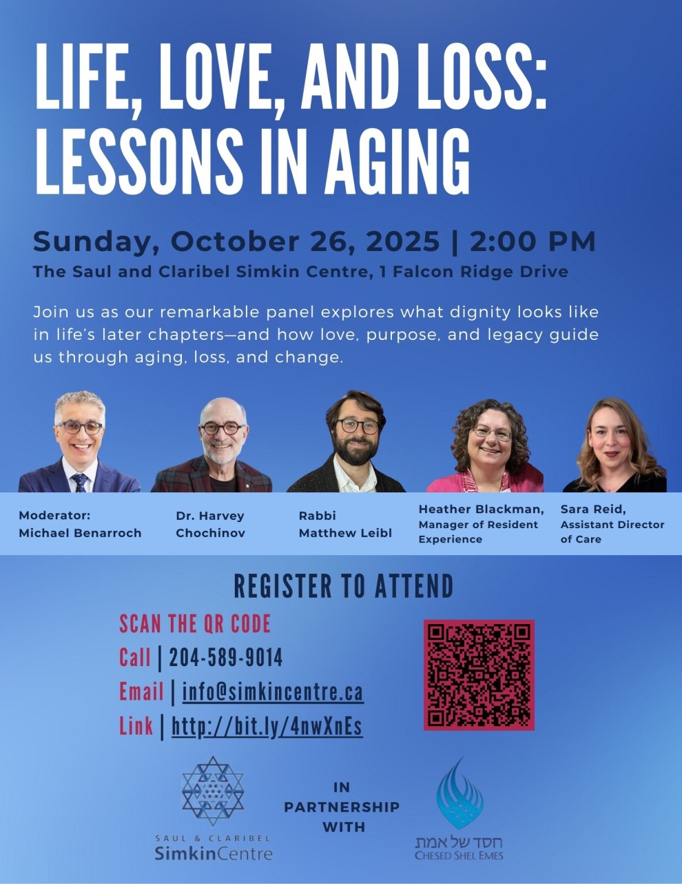 Panelists: Dr. Harvey Chochinov, Rabbi Matthew Leibl, Heather Blackman (Manager of Resident Experience) & Sara Reid (Assistant Director of Care)