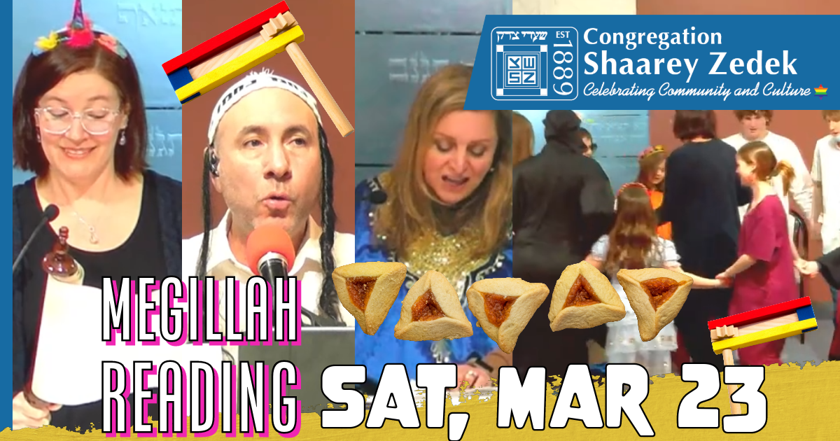 You may also join us for the second reading of the Megillat Esther on Sunday, March 24 following the 9:00 AM Minyan.