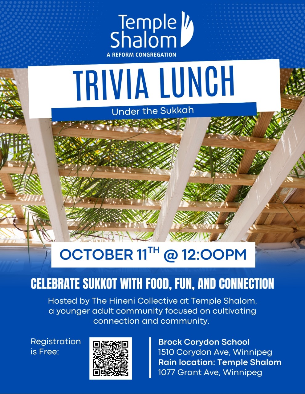 Temple Shalom Trivia Lunch - Under the Sukkah. Hosted by the Hineni Collective at Temple Shalom, a younger adult community focused on cultivating connection and community.