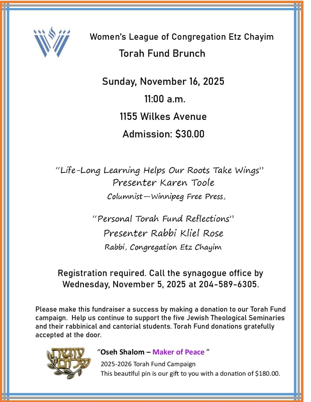 Register by calling the office at 204-589-6305