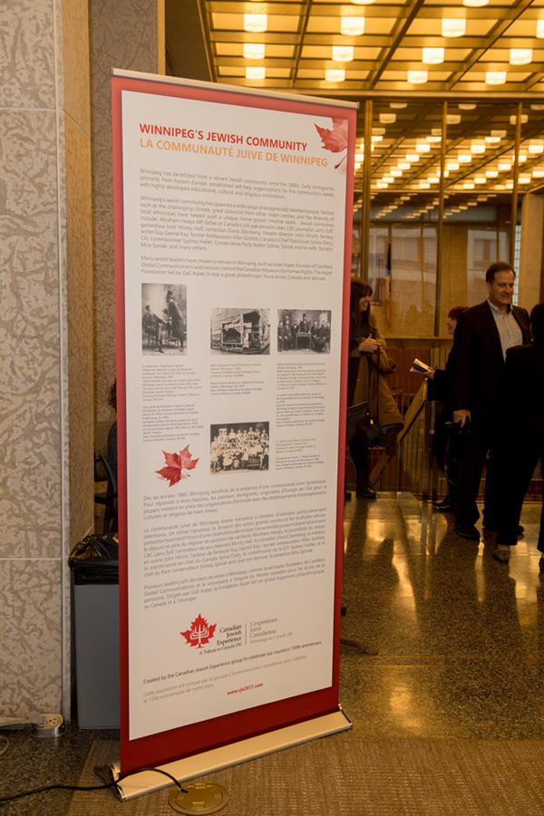 On Thursday, October 26th, at a ceremony hosted by Federation President Adam Levene, Mayor Brian Bowman launched the Canadian Jewish Experience exhibit for Canada’s 150th anniversary. For the occasion, the CJE prepared a new panel on our community’s contribution to the development of Canada.