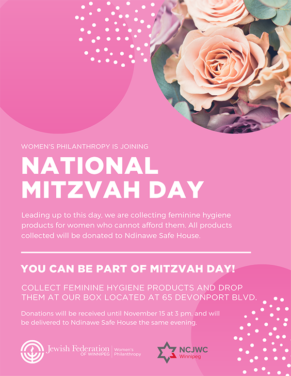 Join Women's Philanthropy by donating feminine hygiene products to women who cannot afford them. Collections accepted until Sunday, November 15!
