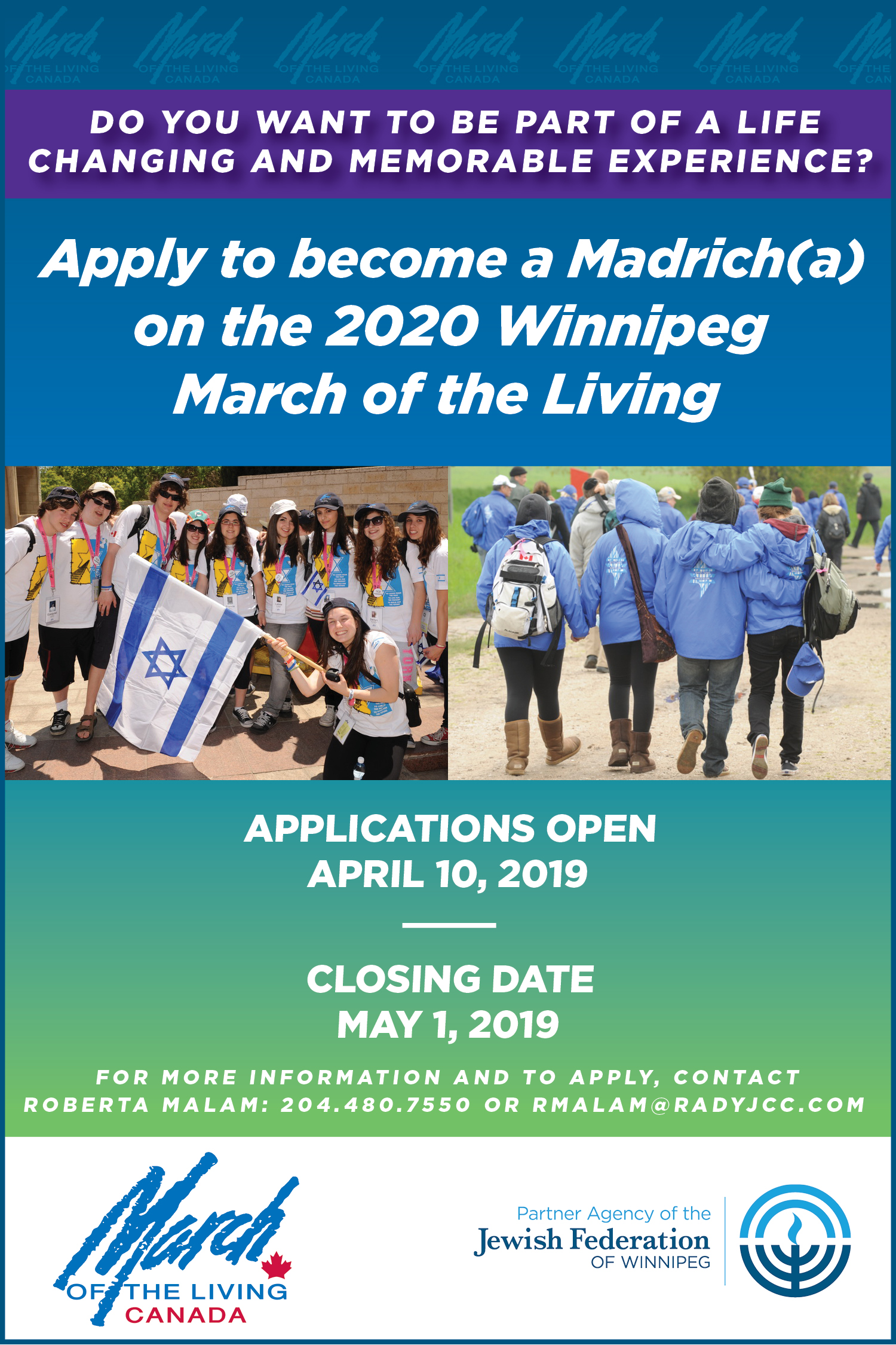 Interested in being a chaperone for the March of the Living in 2020? The Jewish Federation of Winnipeg is seeking applicants to fill chaperone positions for next year’s program.