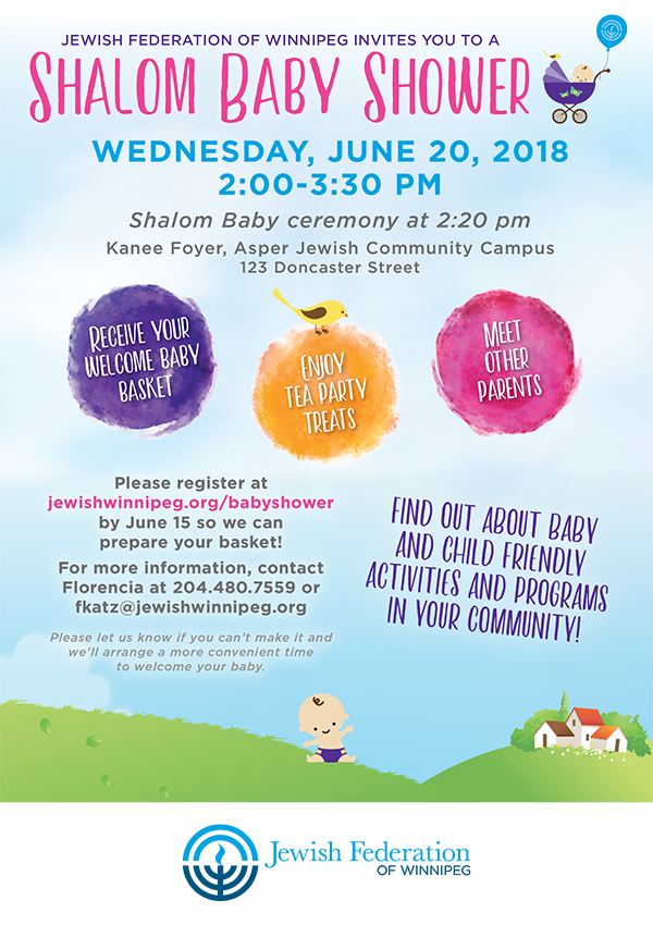 New babies in the community are invited to the Shalom Baby Shower on Wednesday, June 20, 2018.