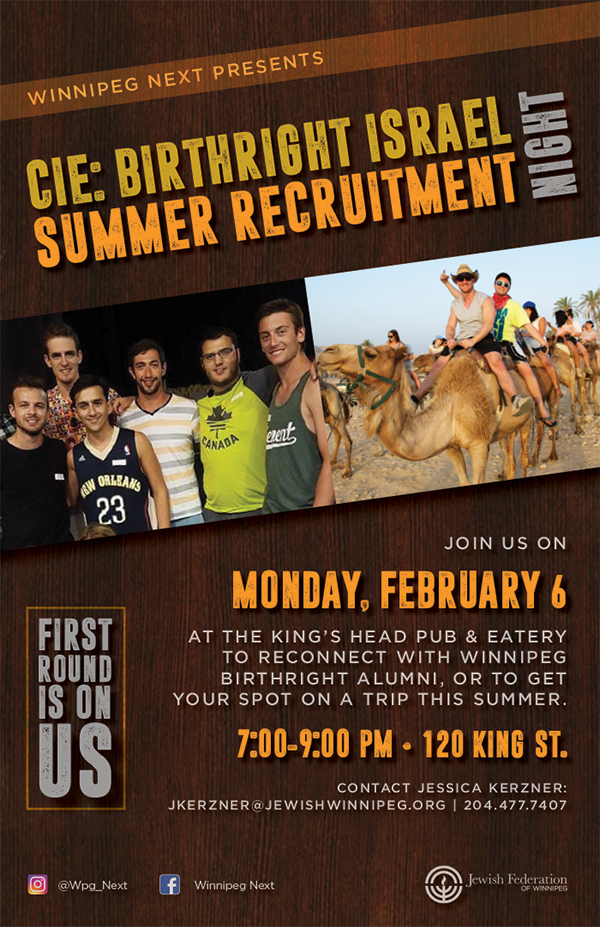 Join us at the King's Head Pub for a Summer Recruitment Night for CIE: Birthright Israel!
