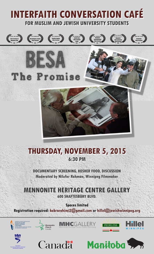 Interfaith Conversation Cafe event for Jewish and Muslim university students featuring the screening of an extraordinary film called BESA: The Promise, Albania's heroism in WWII through the modern day journeys of two men.