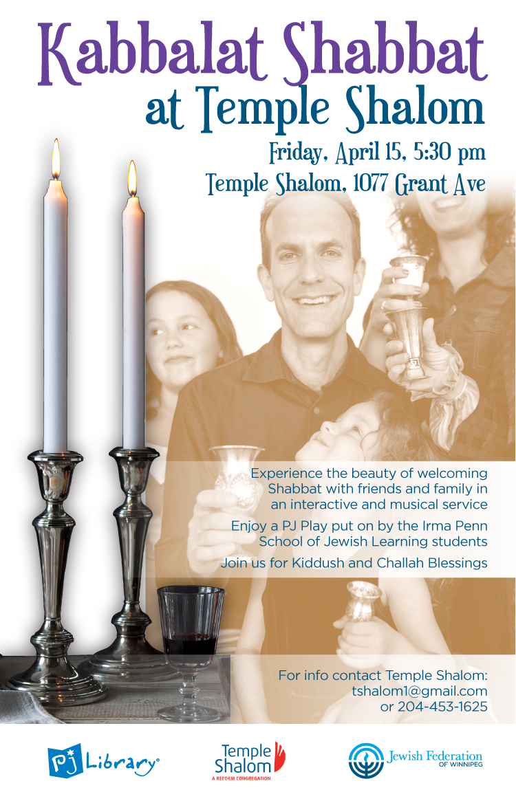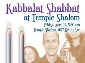 Experience the beauty of welcoming Shabbat with friends at Kabbalat Shabbat at Temple Shalom on Friday, April 15.