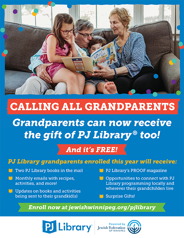 Grandparents of PJ Library subscribers can enroll too and join in on the fun! See image below for details!